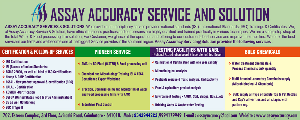 We, at Assay Accuracy Service & Solution, have ethical business practices and We are a single stop shop of the total Water & Food processing firm solution, For Customer; we glance at the operation and offering to our customer’s best service and improve their abilities. We offer the best service in our fields and we are one of the biggest Service providers in the southern region.